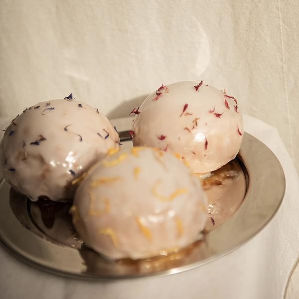Delikatna bułeczka drożdżowa wypełniona kremowym nadzieniem na bazie twarogu śmietankowego ze słynnej Mleczarni "Strzałkowo" z dodatkiem wanilii i skórki z pomarańczy, oblana lukrem maślankowym.