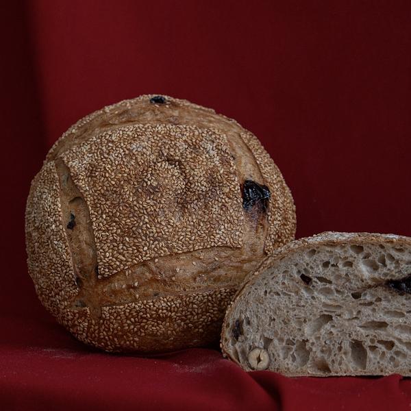 Chleb Pszenno-orkiszowy z orzechem laskowym i wiśnią