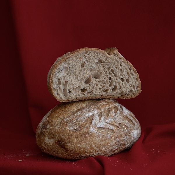 750 g Chleb pszenny na zakwasie. Zawiera 15% mąki pszennej razowej.