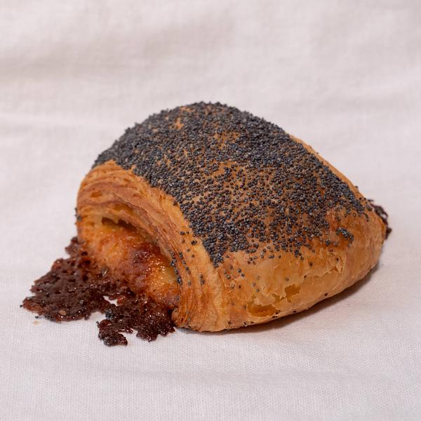 Ciasto półfrancuskie ze skorupką z czarnego maku, zapieczone z ucieranym nadzieniem marcepanowo-maślanym; klasyczny duński wypiek.